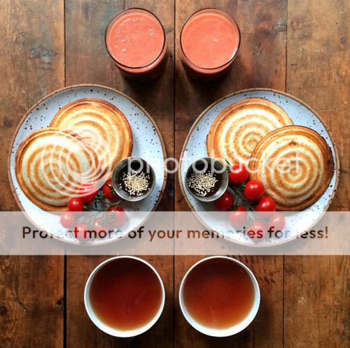 Его владелец - Майкл Зии каждый день делает завтрак для себя и своего бойфренда - завтраки симметрично сервированы и каждый божий день, каждый! уже на протяжении нескольких лет, совершенно разные. Мне просто страшно представить сколько он уже перепробовал и какие разнообразнейшие комбинации напитков/блюд использовал.)