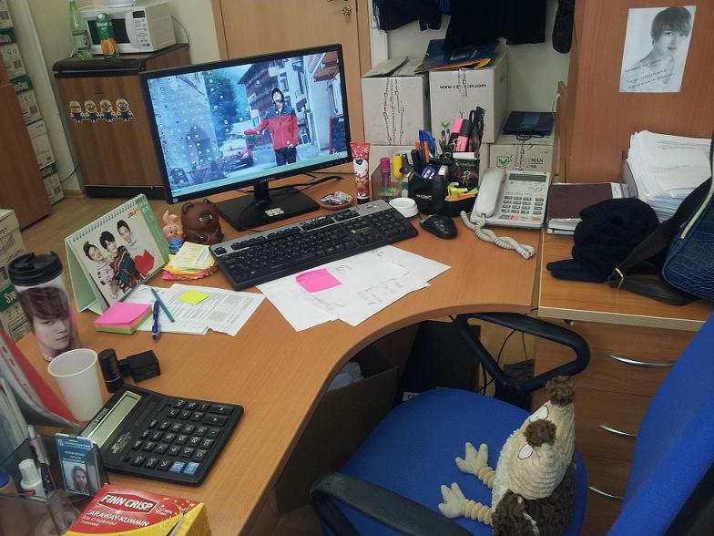 кстати мое рабочее место после переезда, трудно не заметить корейское)))